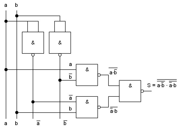 ![]() Función implementada con puertas NAND. |