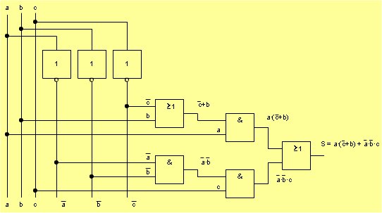 Por ejemplo:, una función lógica de tres variables puede ser: