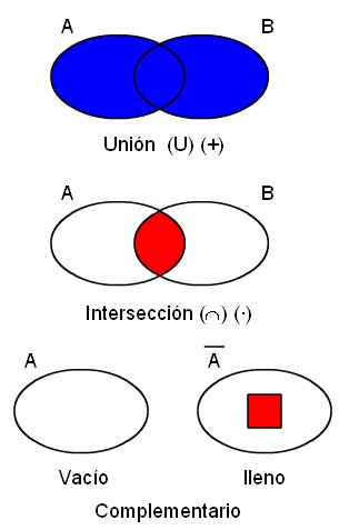 El álgebra de conjuntos se desarrolló con las operaciones unión de conjuntos (U) (+), intersección de conjuntos (∩) (·) y el complementario. ![]() Operaciones lógicas | |||||||||||||||