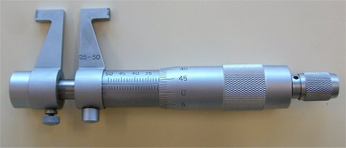 Existen otros tipos de Pálmer, como el de medición de interiores. La medición se realiza de forma análoga a la del Pálmer de exteriores. Su aspecto puede verse a continuación. ![]() Pálmer de medición de interiores ![]() Medida interior con un Pálmer |