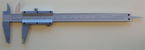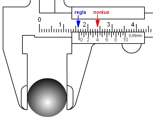 Al pie de Rey también se le conoce con el nombre de calibre. El aspecto que tiene es el siguiente: ![]() Pie de Rey Consta de una regla fija y un nonius que se desliza sobre esta. ![]() Pie de Rey, regla fija y nonius La regla está divida en divisiones iguales, normalmente de un milímetro, también puede estar dividida en octavos de pulgadas. El nonius se divide en un número de divisiones de manera que se cumple, que un número de divisiones de la regla (N) ocupa el mismo espacio, que un número de divisiones del nonius (n) menos una. O sea: N = n - 1 Si llamamos D a la medida de cada división de la regla y d a la del nonius, la precisión del instrumento será: P = D - d. Se cumple que: N x D = n x d. Operando se obtiene otra forma de expresar la precisión : P = D / n. |
