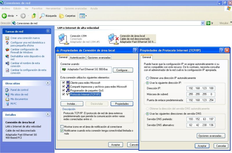 ![]() Configuración de la red y DNS | |||||||||||||