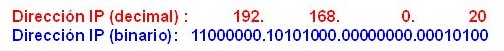 ![]() Dirección IP representación decimal y binaria | |||||||||||||