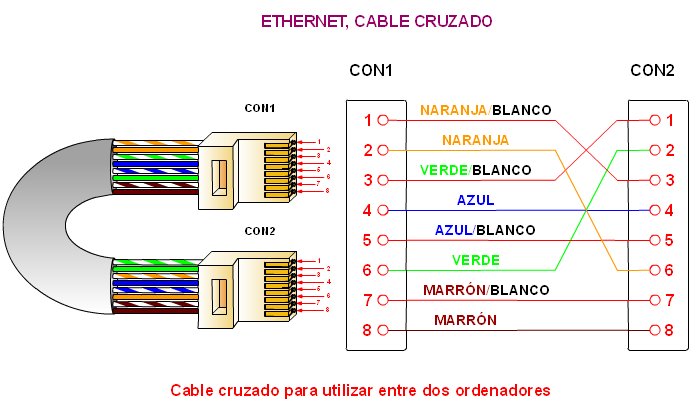 Conexiones de una red con par trenzado ordenador-ordenador