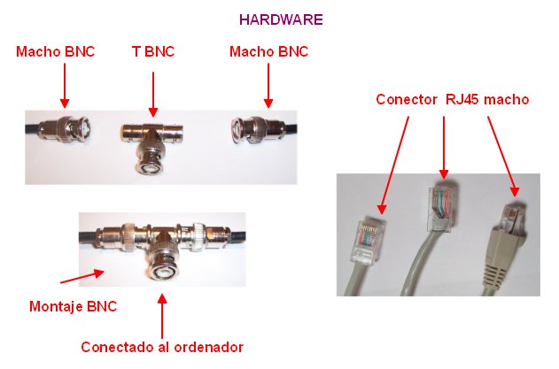 Para crear la red es necesario un hardware que una los dispositivos (tarjetas, cables) y un software que implemente las reglas de comunicación entre ellos (protocolos y servicios). | |