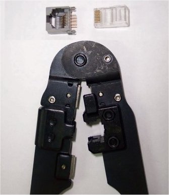Para conectar los cables a los conectores necesitamos de un alicate especial en el que se inserta el conector RJ 45 con los hilos y se encarga de hacer la conexión.